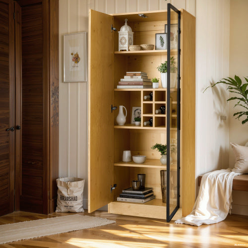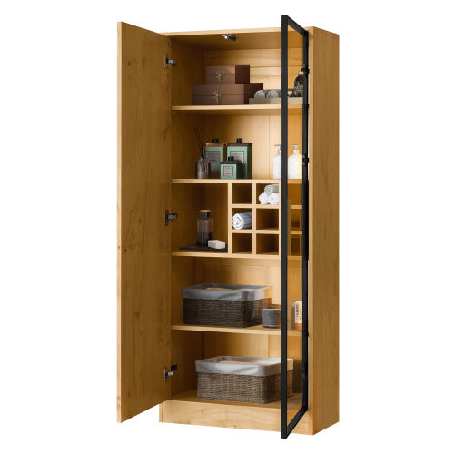 - Offene Fächer, einfacher Zugang zu den täglichen Notwendigkeiten zu jeder Zeit, während die Holztür effektiv die Privatsphäre schützt, perfekte Balance zwischen Praktikabilität und Ästhetik.