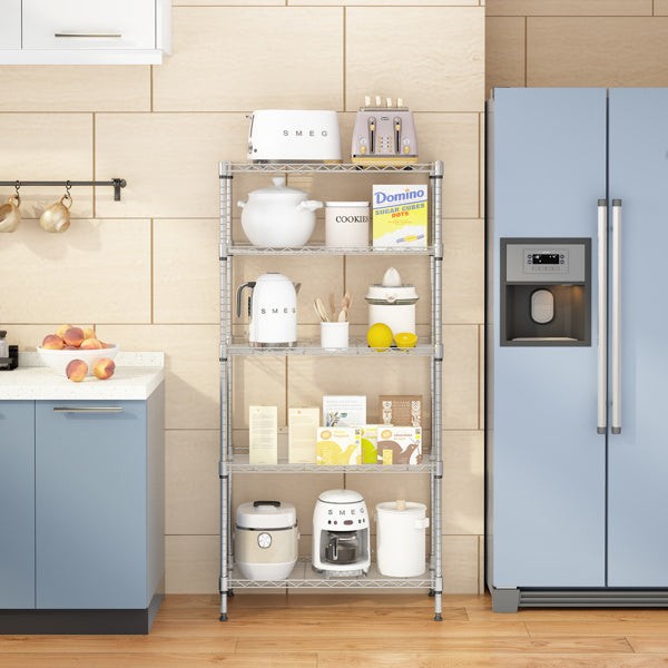 Carbon Steel Rectangular Metal 5-layer Storage Rack - Silver Gray