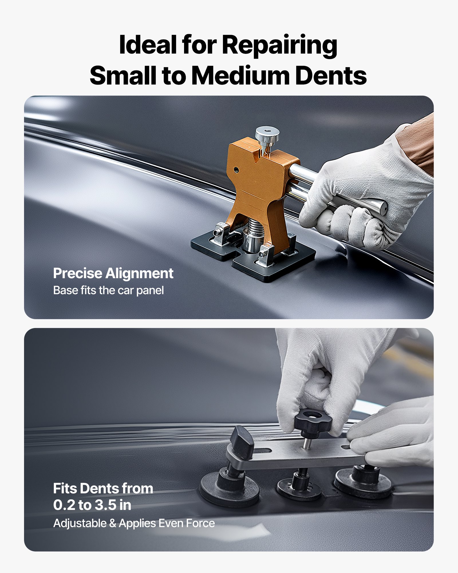 VEVOR Dellenzieher Set (100 Stk.) zur lackfreien Dellenentfernung mit goldenem Heber, Brückenzieher, Gleithammer, T-Stange, Klebepistole, Beulen Reparaturset Dellen Reparaturset Ausbeulreparatur