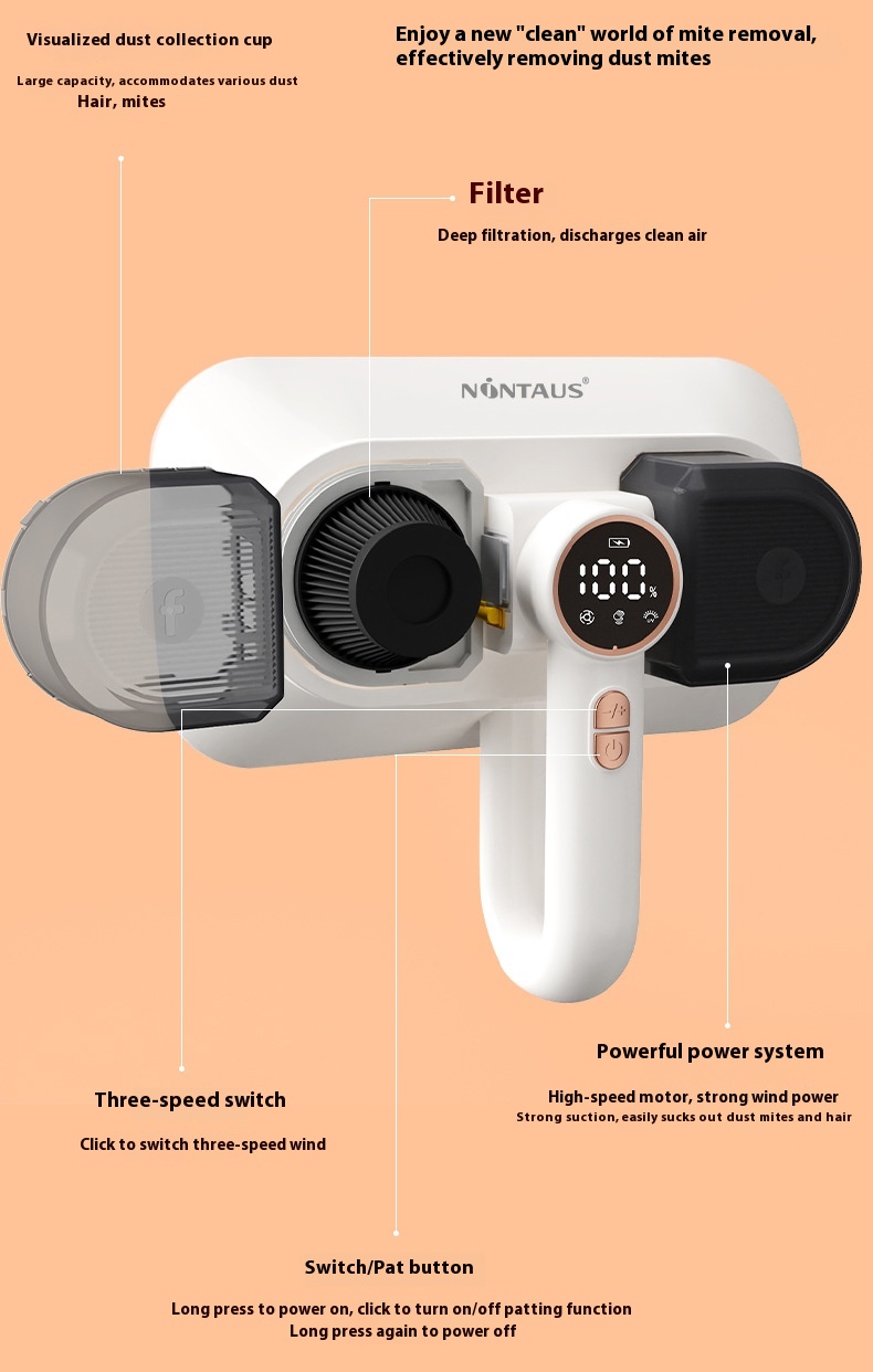 Household Double Cup Strong Suction UV Portable Small Wireless Handheld Anti-mite Vacuum Cleaner