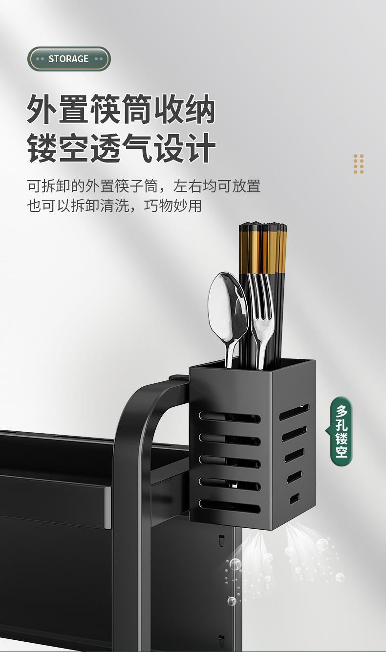 Küche Schwarz Gewürz Flasche Essstäbchen Messer Integrierte Lagerung