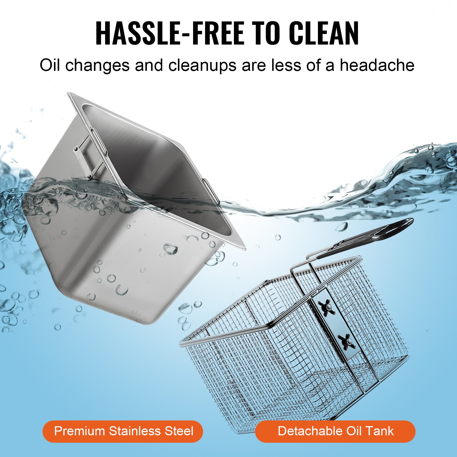 VEVOR kommerzielle Fritteuse, 3100W elektrische Aufsatzfritteuse mit Korb und höhenverstellbaren Fü_en, 9 L Edelstahl Einölfritteuse mit Temperaturregelung _berhitzungsschutz, für Restaurant Café Bar