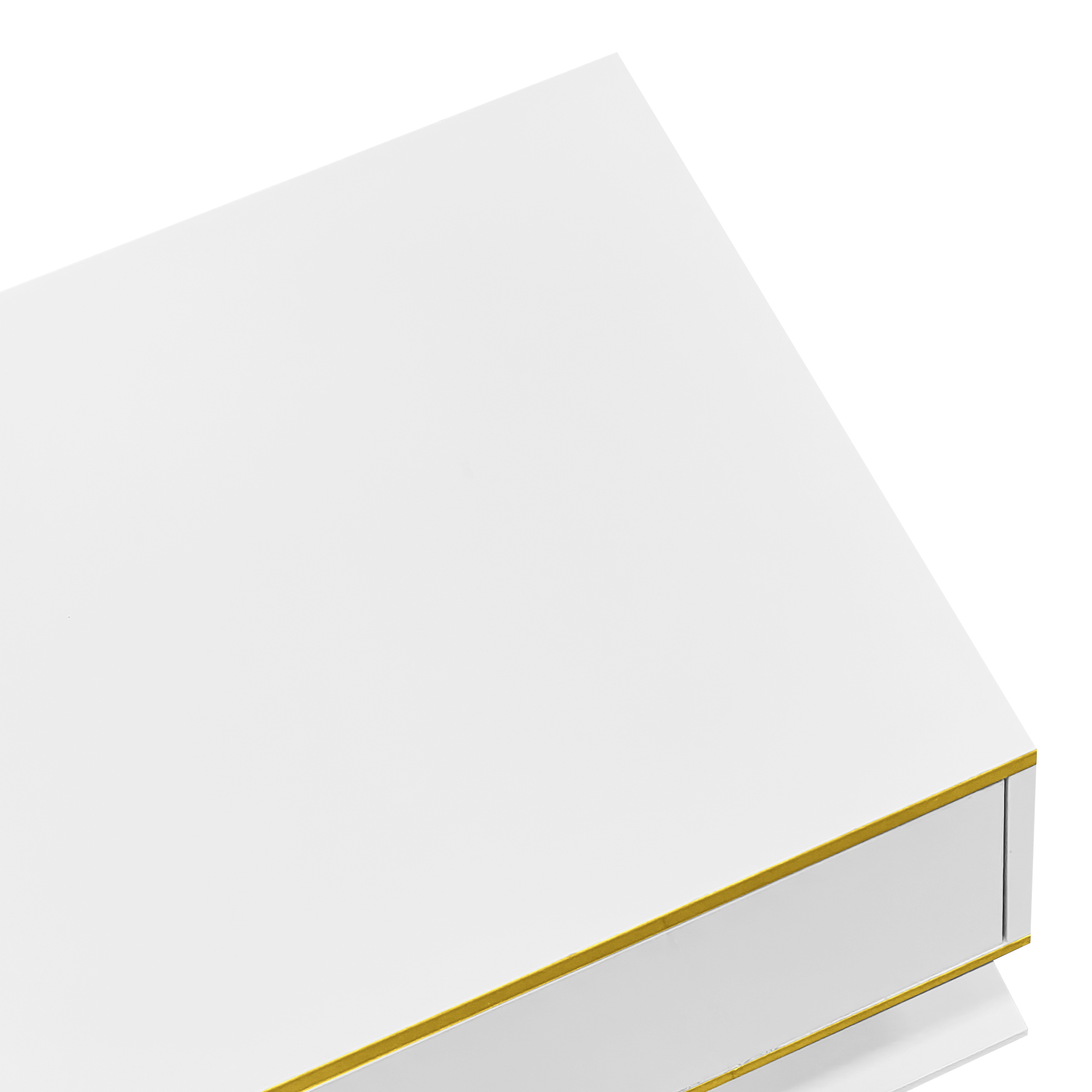 1.Golden decorative strips for a luxurious look 2.High-gloss surface that reflects the surroundings 3.Three drawers and one compartment for multifunctional storage 4.High-quality materials, durable and sturdy 5.Premium sliding rails for smooth operation 6.Color-changing LED light strips for flexible use 7.Ideal size, suitable for most living spaces