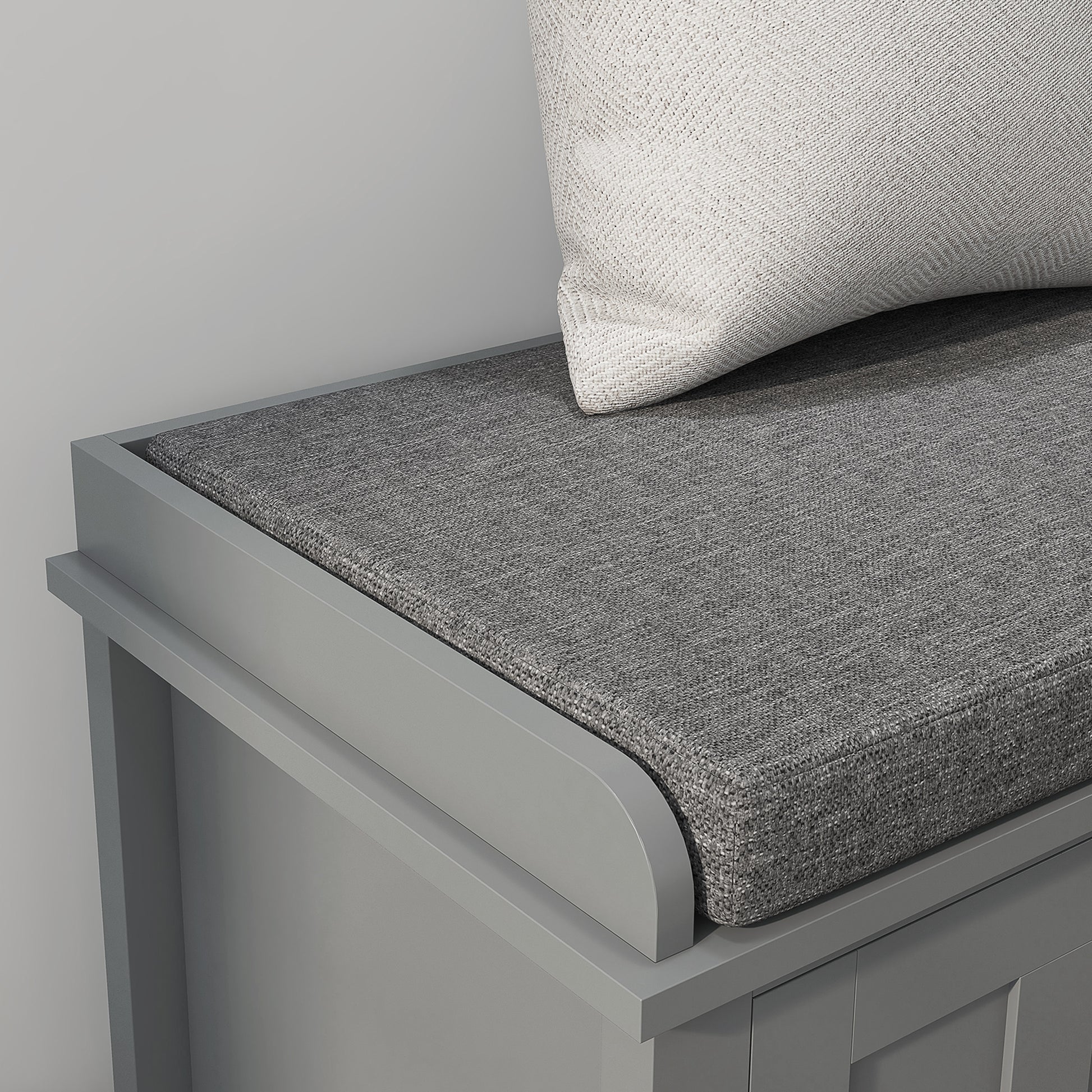 Modern Shoe Storage Bench, Entry Way Bench with Cushion, 2 Sliding Doors, Storage Ottoman Bench, Holds 10 Pairs, Gray