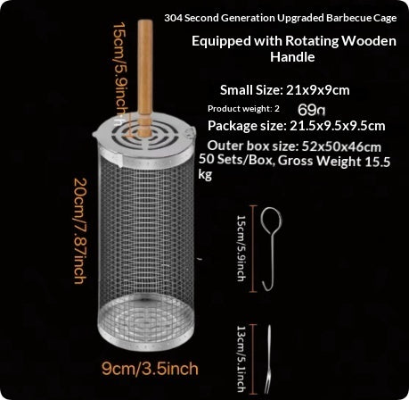 Outdoor BBQ Grill Basket With Wooden Handle