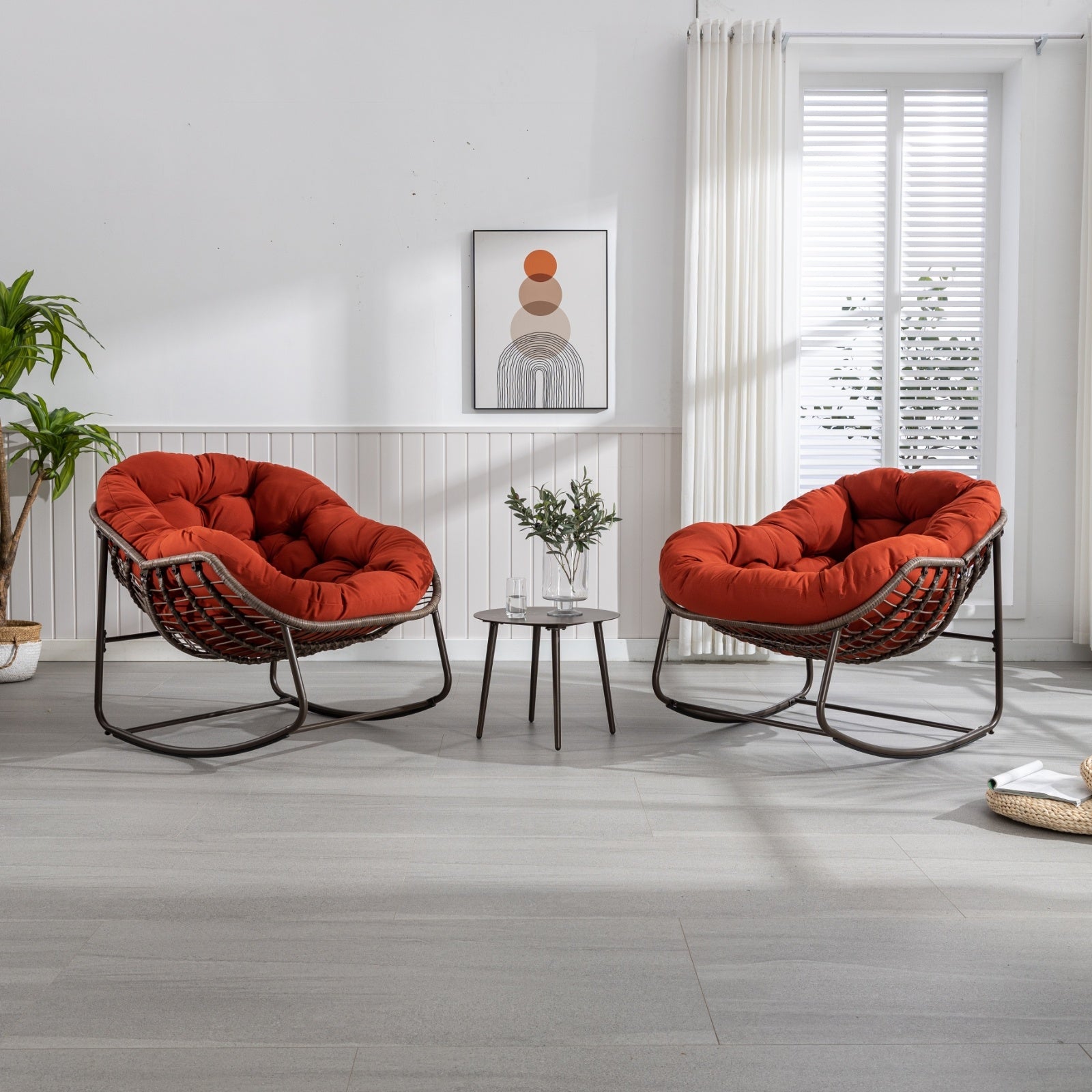 Our rattan chairs are meticulously hand-woven with high-quality synthetic rattan material, the rattan is not easy to fade and durable. Enjoy the sunbathe with our oversized rocking chair and it will bring you a different experience.