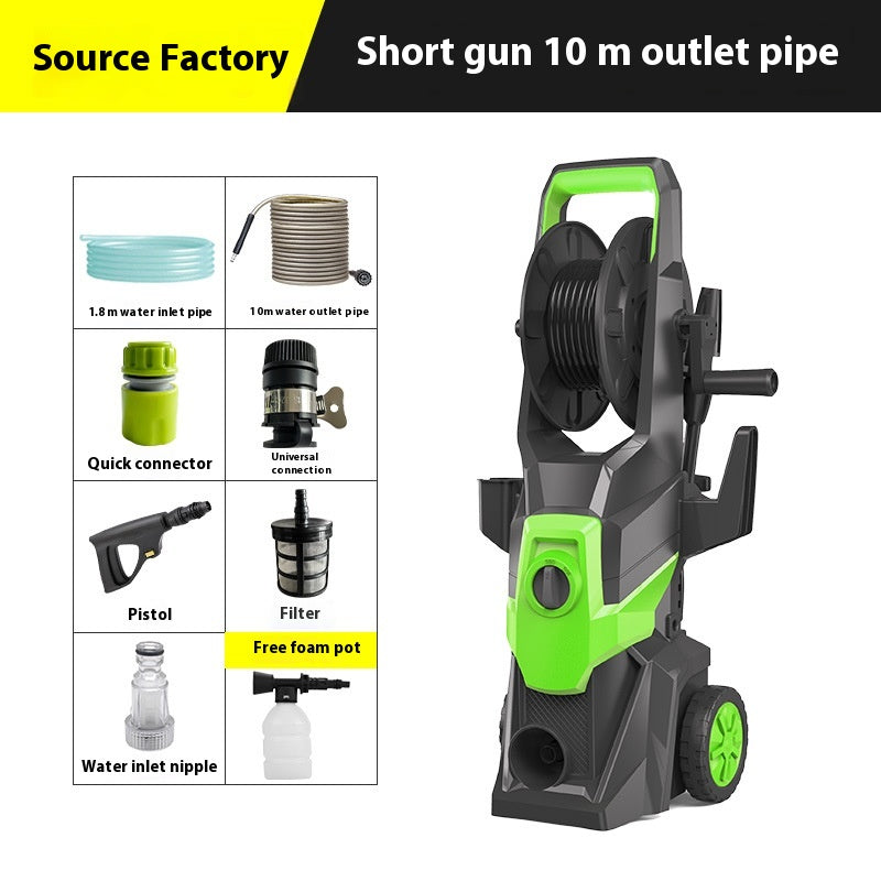 Package configuration: (5 m power cord) 1x winding vertical high pressure car washing machine - blue 1x car wash gun + extender 1x inlet hose (1.8m) 1x Outlet hose (7M) 1x foam pot 1x air filter 1x quick connector 1x universal connector 1x feeding pacifier