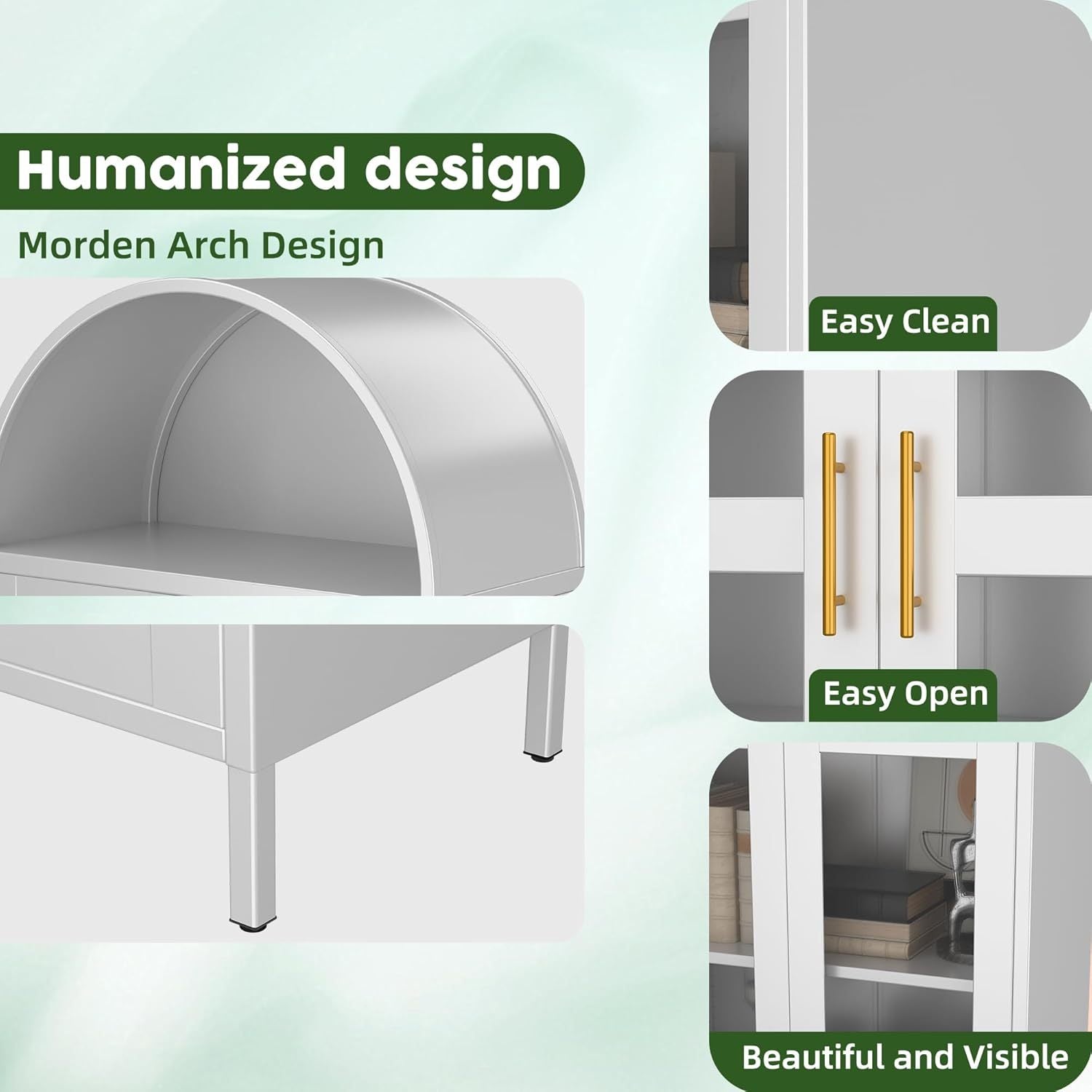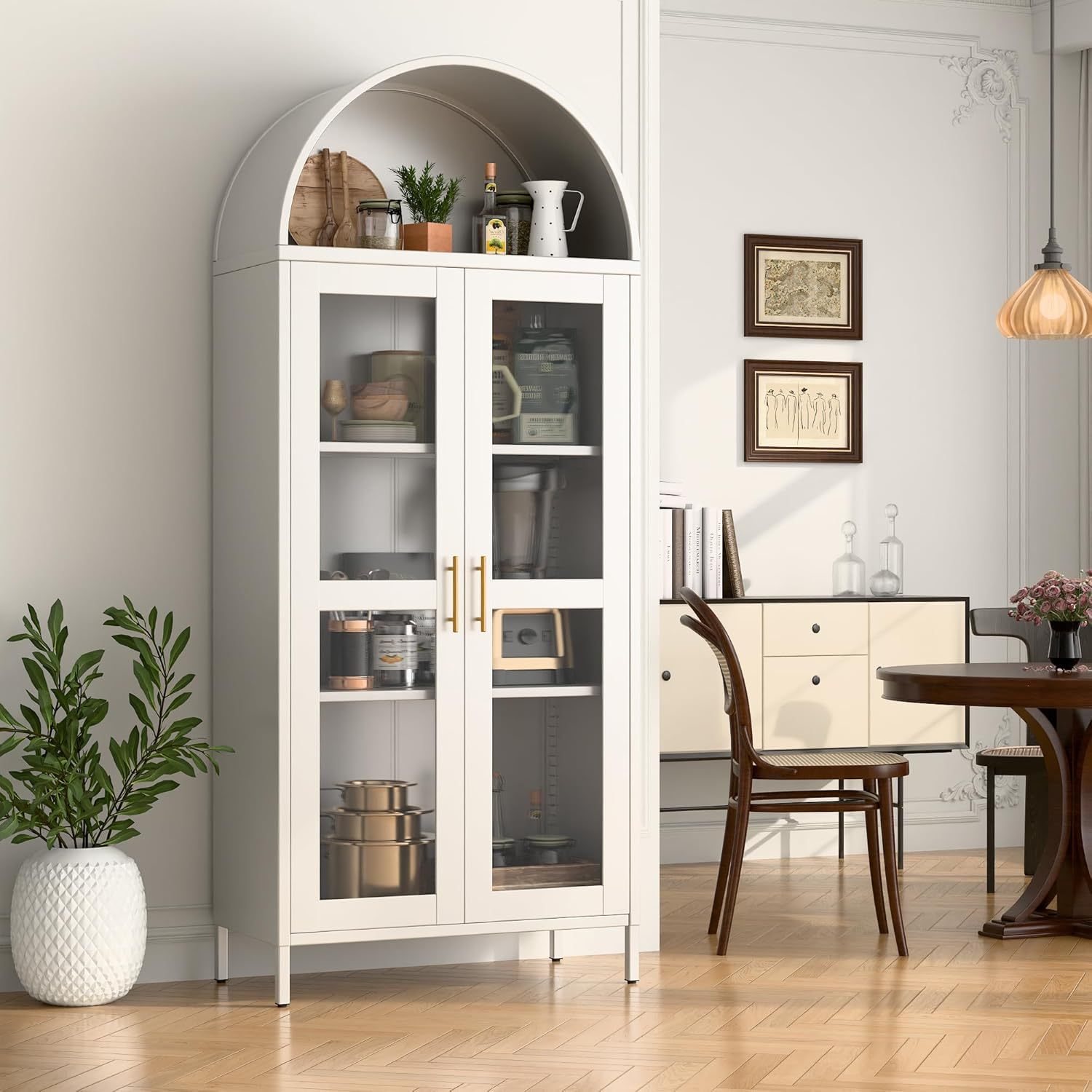 - [The metal arch cabinet is versatile] It was designed not only for storing dishes, but also to stylishly display ceramic accessories. Perfectly suited for living rooms, kitchens or other spaces - this elegant display case will enhance your decor while providing practical storage solutions.