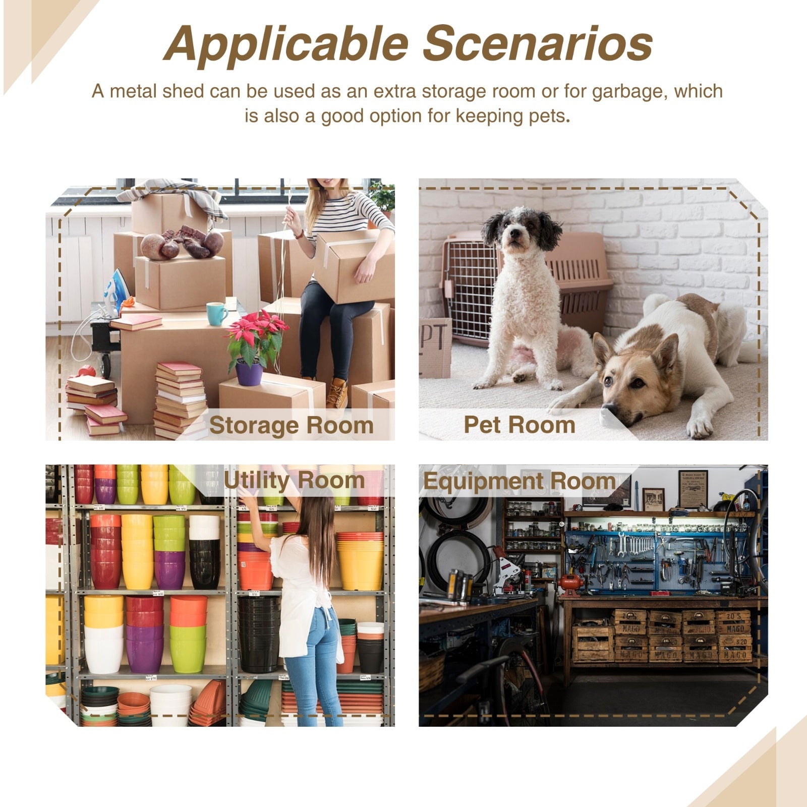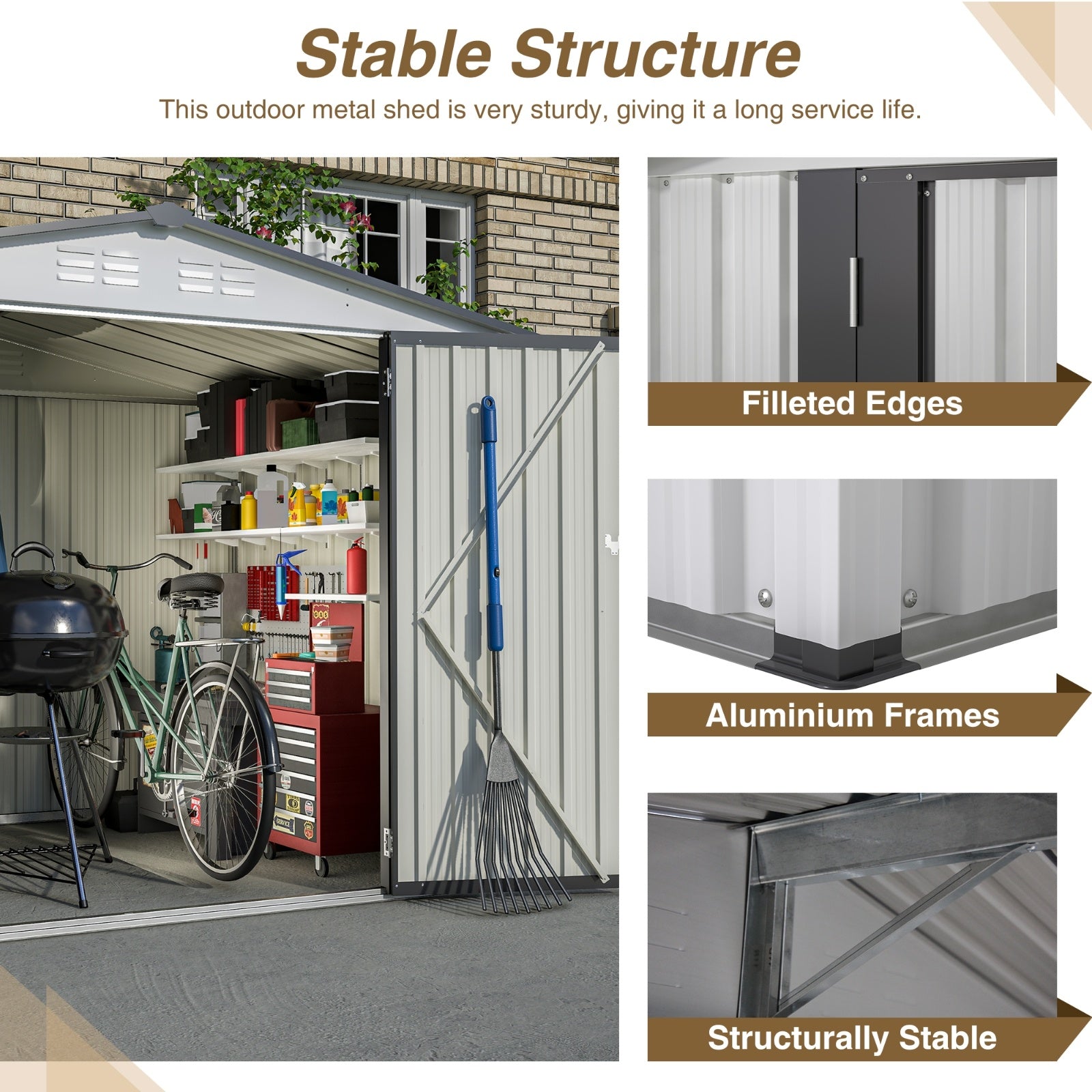 8 X 6 Ft Outdoor Storage Shed, All Weather Metal Sheds With 2 Lockable Doors, Tool Shed For Garden,