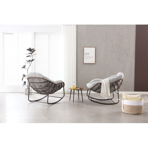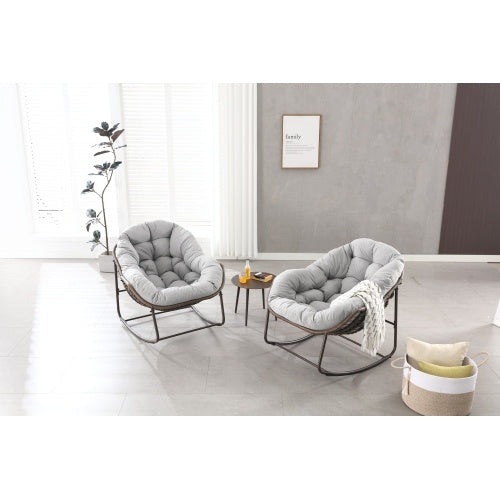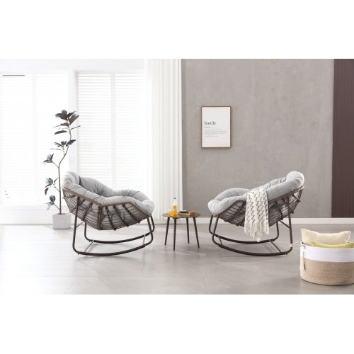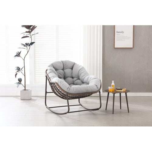 Product Name:Outdoor Rocking Chair, Patio Oversized Wicker Egg Rocking Chair, Indoor & Outdoor Comfy Rocker Chair with Thick Cushion, Modern Lounge Chair for Balcony, Front Porch, Garden, Backyard, Deck, Gray