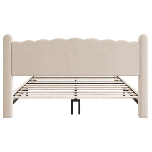 Product Name:Polsterbett 180*200cm mit Lattenrost und Kopfteil, Stilvolles fächerförmiges Kopfteil, Zylindrische Stützbeine,Samt, Beige