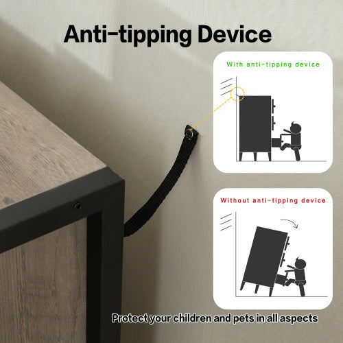 Wooden vanity with 6 drawers, bedroom with wooden storage, solid wardrobe with sturdy steel frame, 48.58" W× 15.75" D×31.22"H, 48", rustic grey