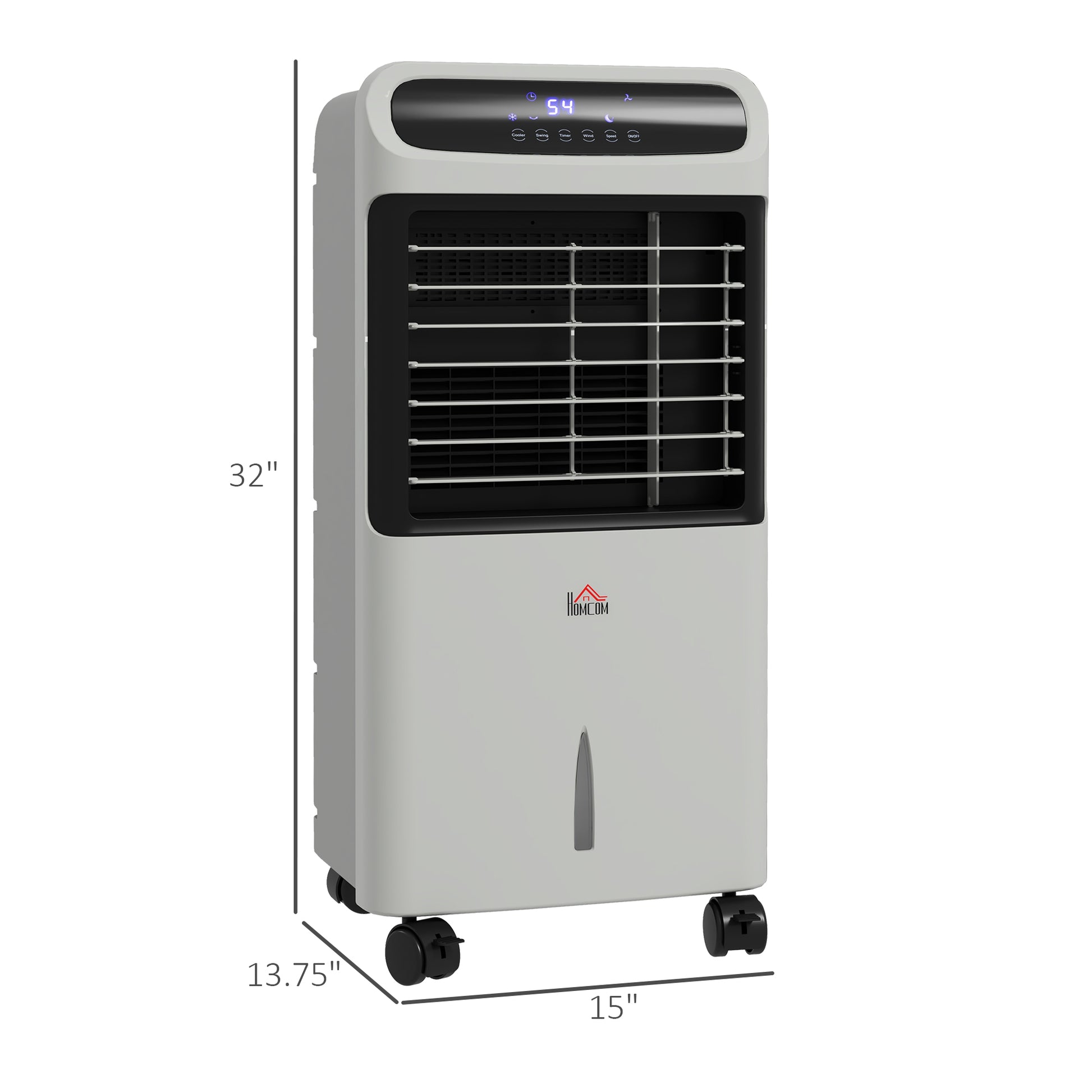 - - LED display, control panel controls on/off, speed, modes, swing, timer, and ice cooling