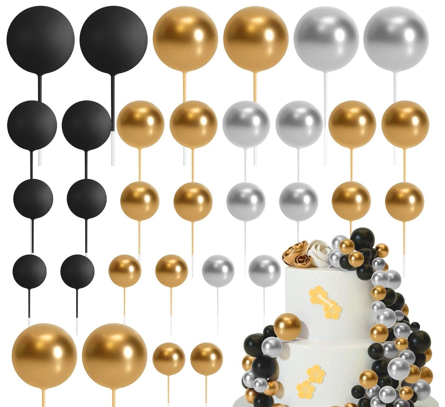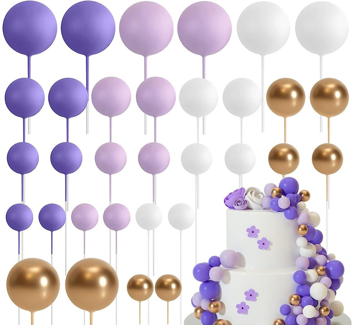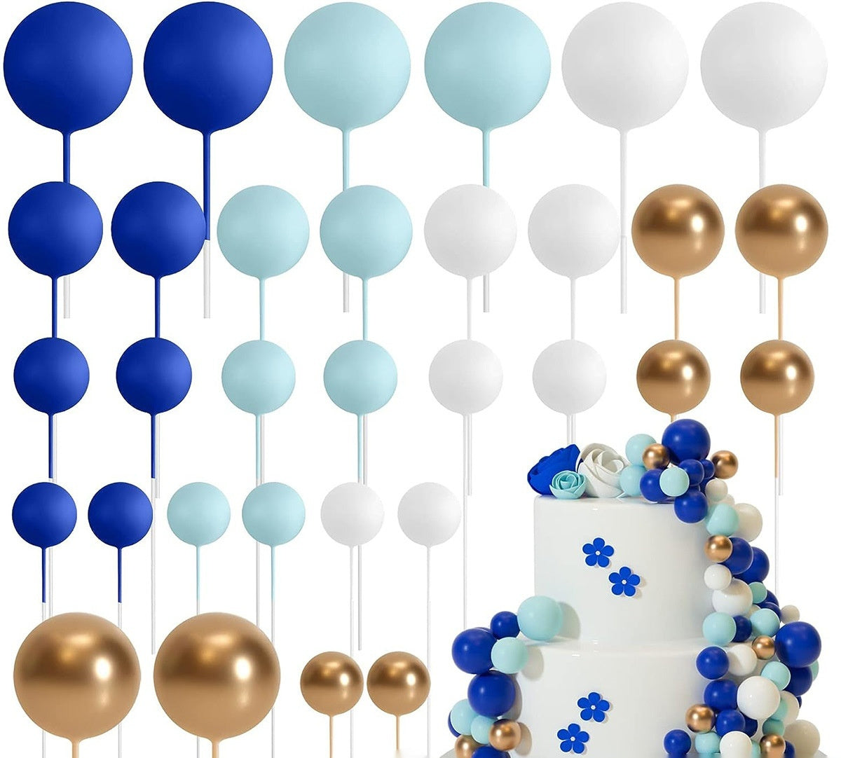 32 Pcsset Colorful Foam Ball Birthday Cake Decoration Multi-style Plug-in