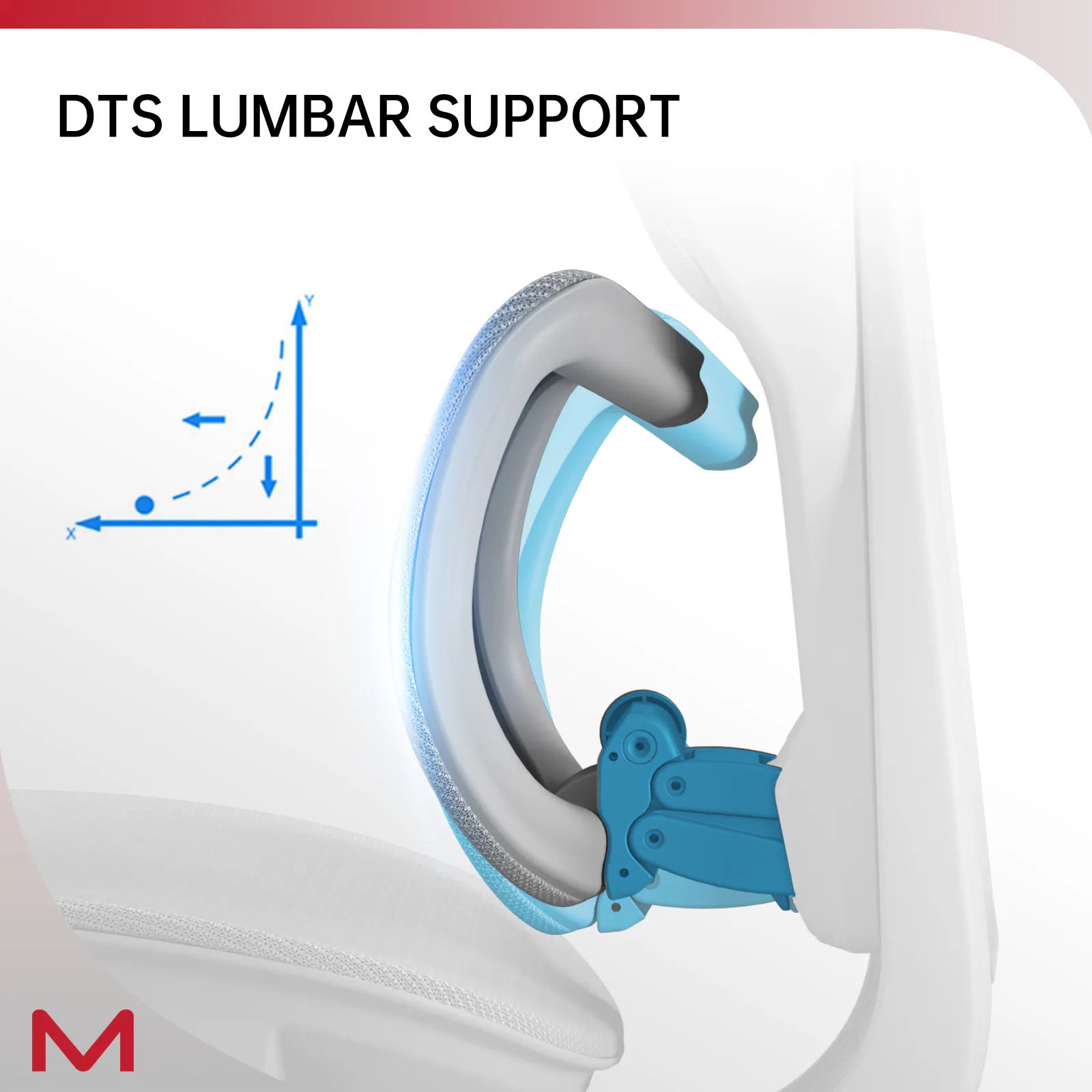 - DTS Ultimate Lumbar Support - This chair features Multi-Adjustable Dynamic Tracking lumbar support. It can automatically follows your waist movement when you move. Its limitless lumbar adjustment allows you to adjust support strength based on the sitting angle and postures. Just simply rotate the knob to achieve the most accurate lumbar support posture, thus obtaining a comfortable experience exclusive tailored to yourself. The adaptive lumbar support shows ultimate ergonomic design, ensuring your sitting experience and reducing fatigue and soreness caused by long-time sitting.