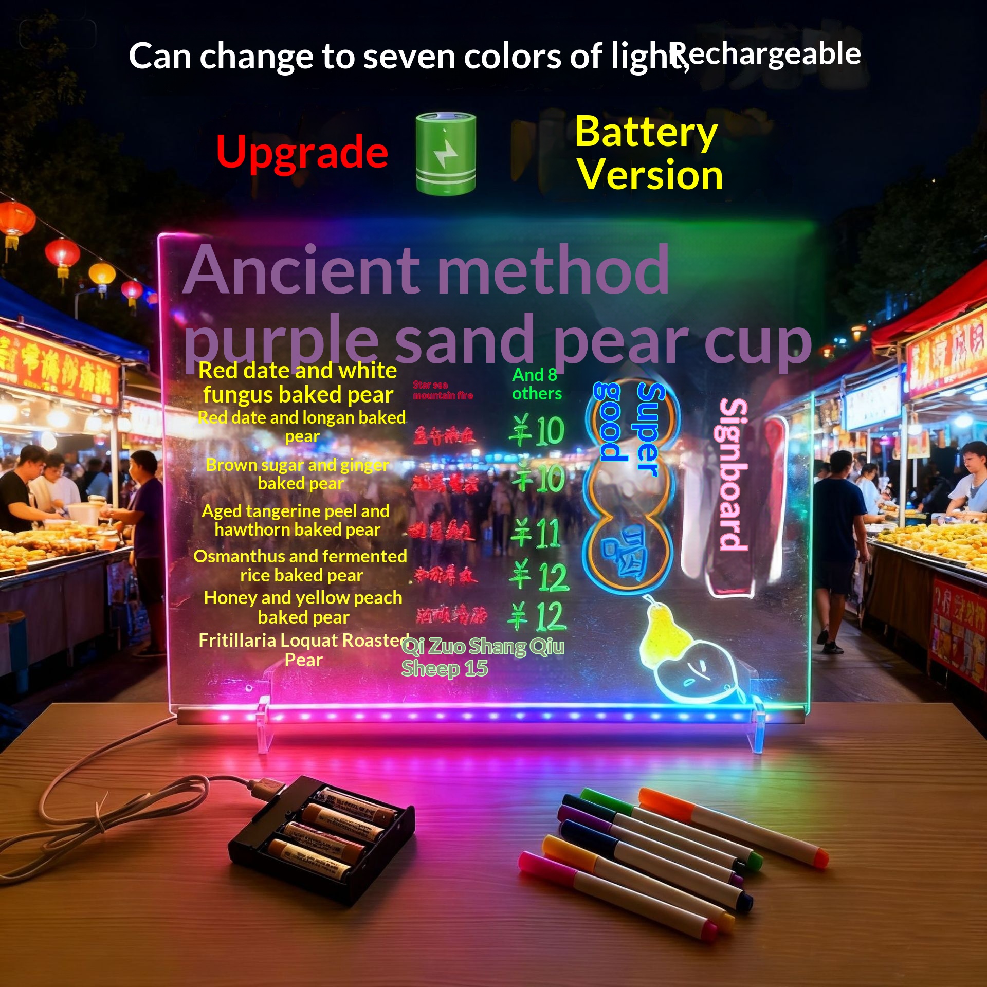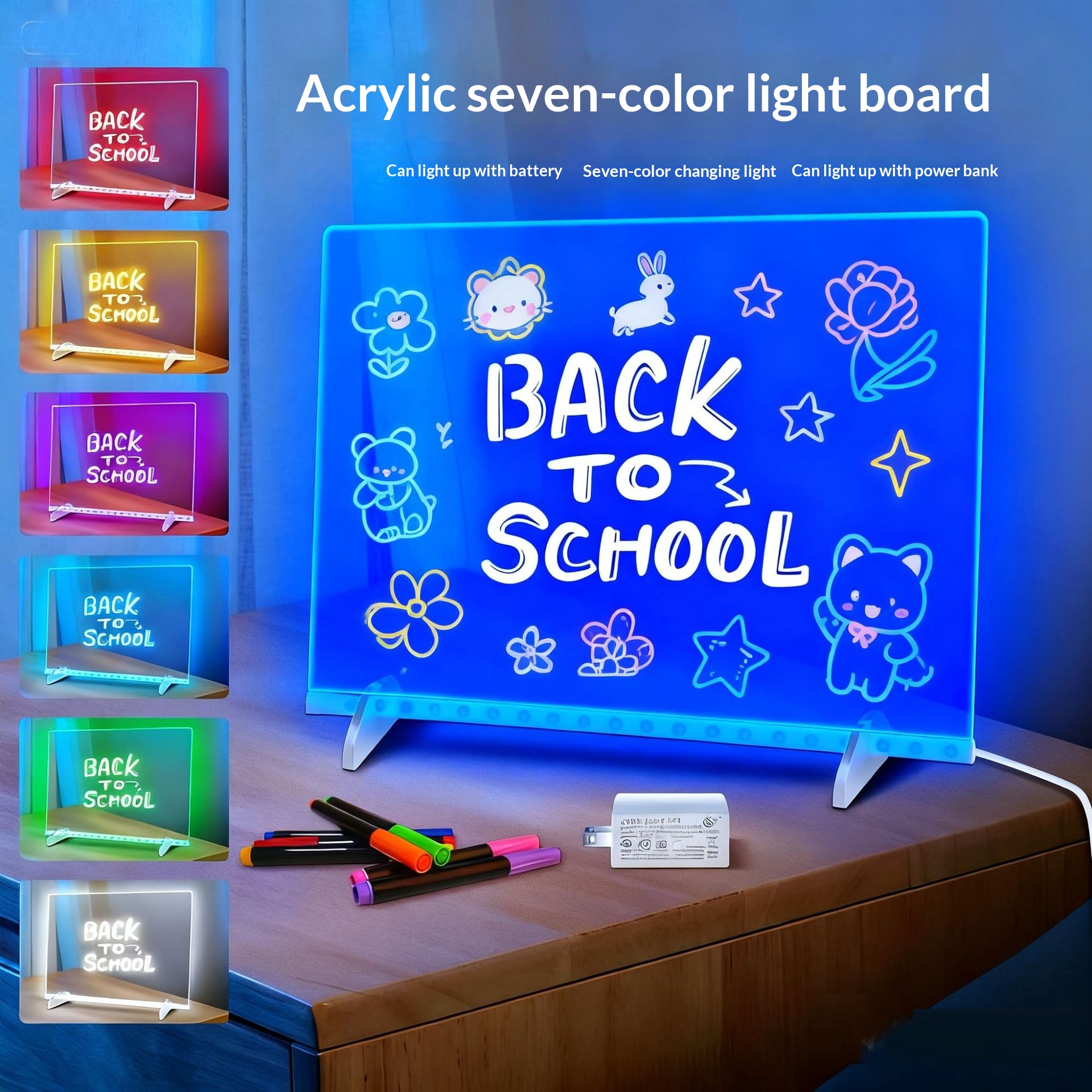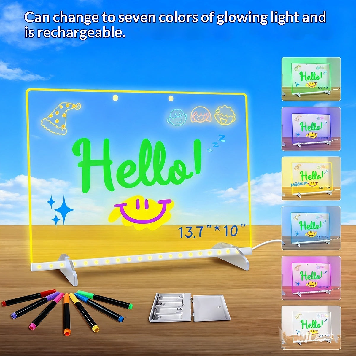 Color: Solid color, 15*15 cm with USB cable (includes 7 highlighters + 2 cleaning cloths + 2 bases + a lanyard); solid color, 20*20 cm with USB cable (includes 7 highlighters + 2 cleaning cloths + 2 bases + a lanyard); solid color, 30*20 cm with USB cable (includes 7 highlighters + 2 cleaning cloths + 2 bases + a lanyard)