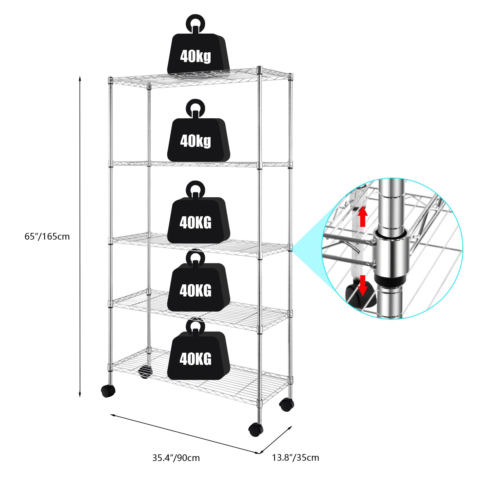 4. Dimensions: (35.43 x 13.78 x 65)" / (90 x 35 x 165)cm (L x W x H)