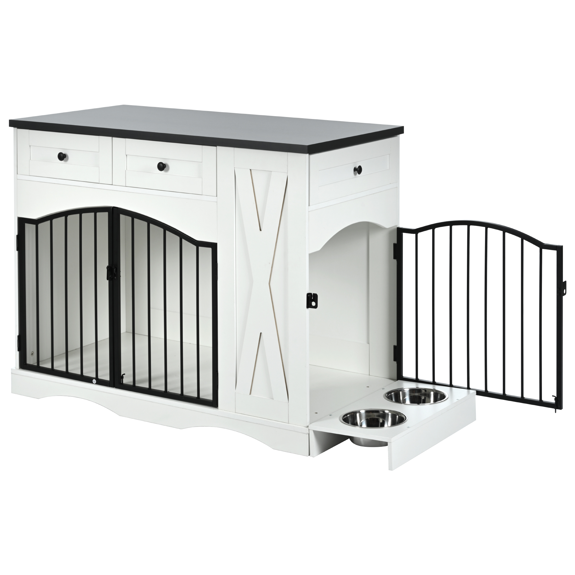 GO 43.3 Farmhouse Dog Crate Furniture, Heavy Duty Dog Crate With 3 Drawers, Indoor Wooden Dog Kennel With Removable Feeder, Dog Cage End Table For Medium Large Dogs, White