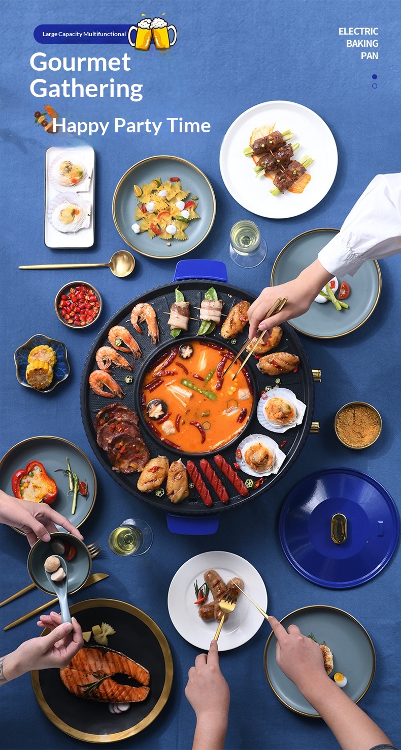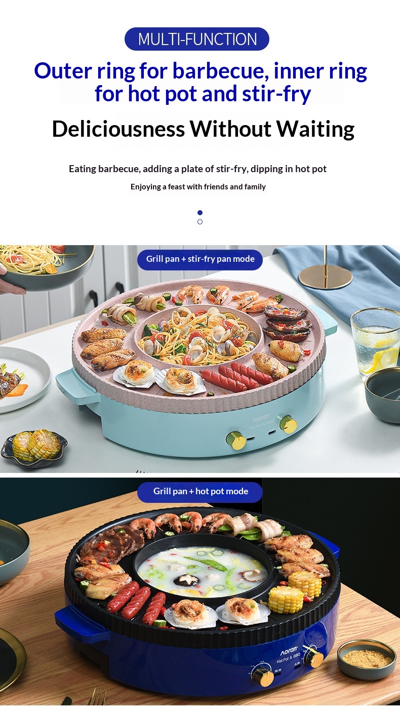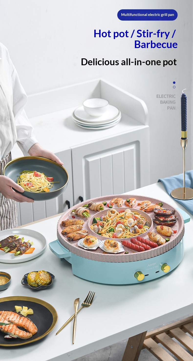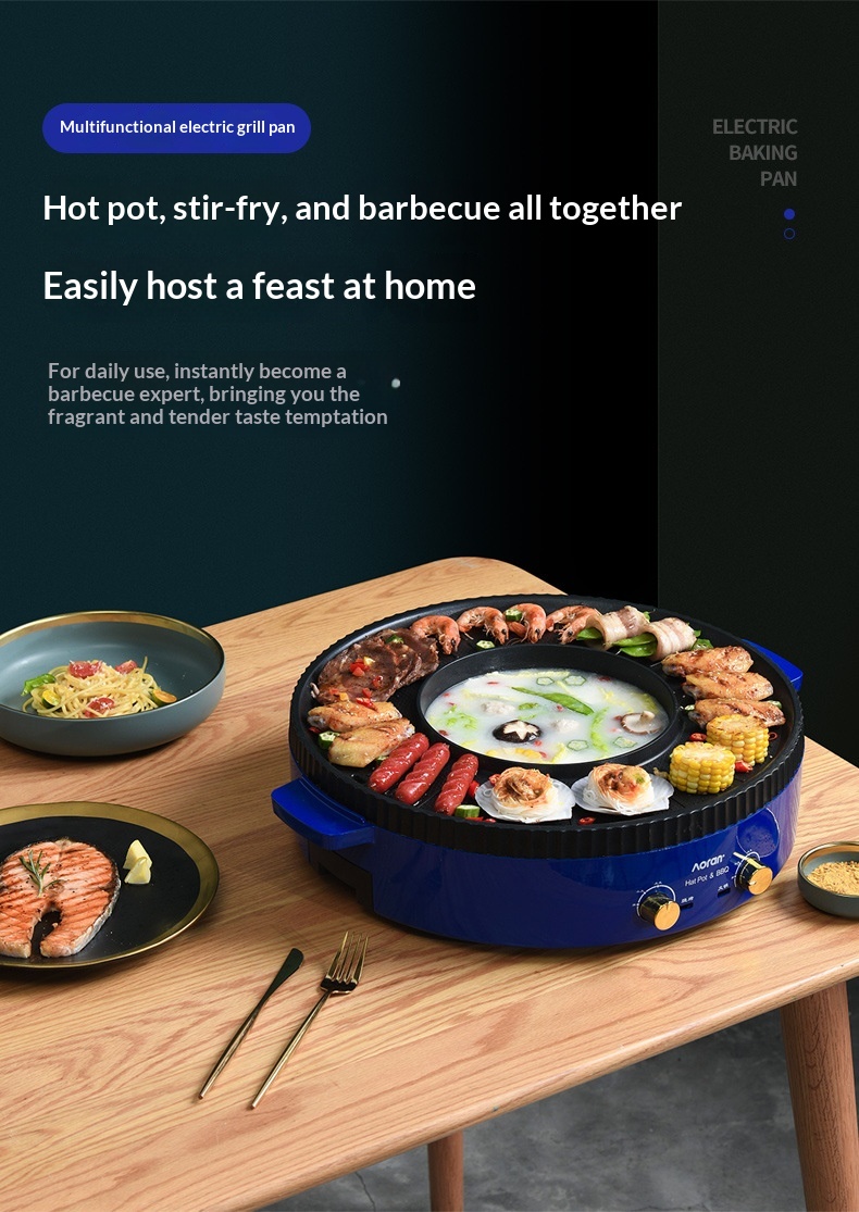 Multi-functional Hot Pot And Grill Combo Electric Barbecue Grill
