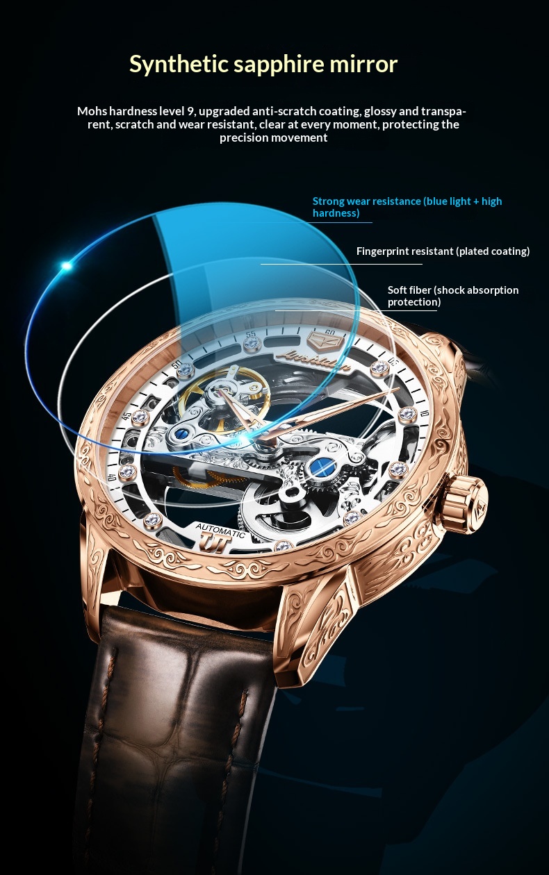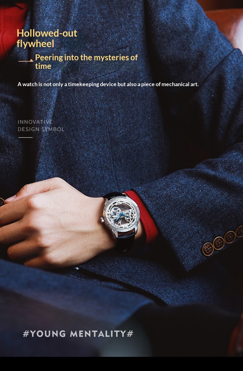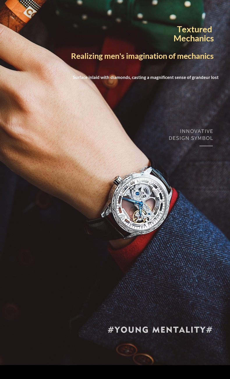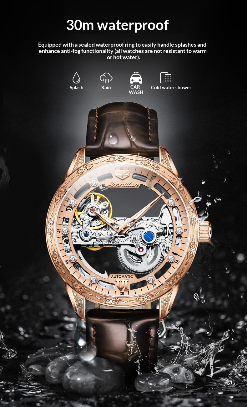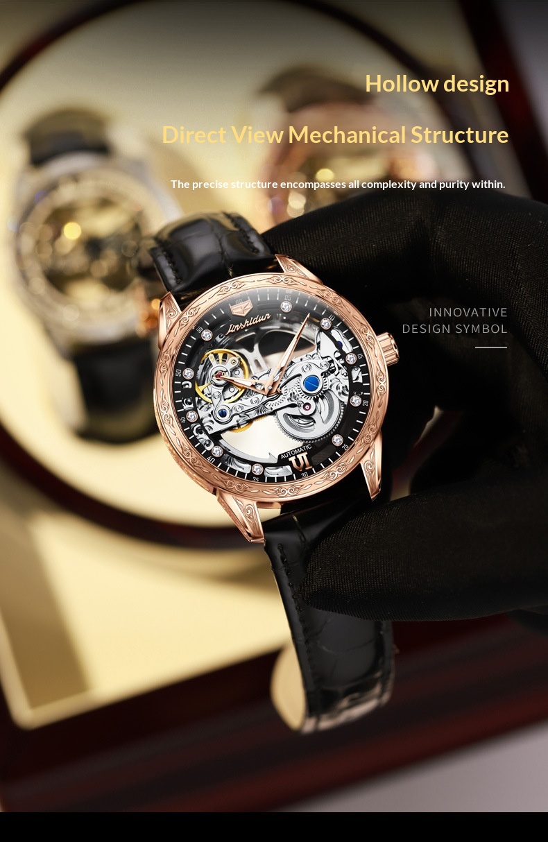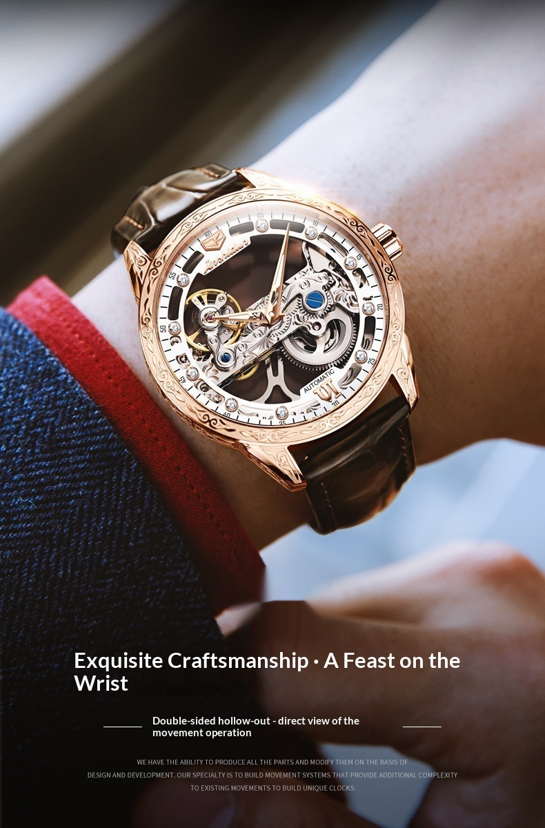 Openwork Mechanical Watch With Waterproof Leather Strap For Men