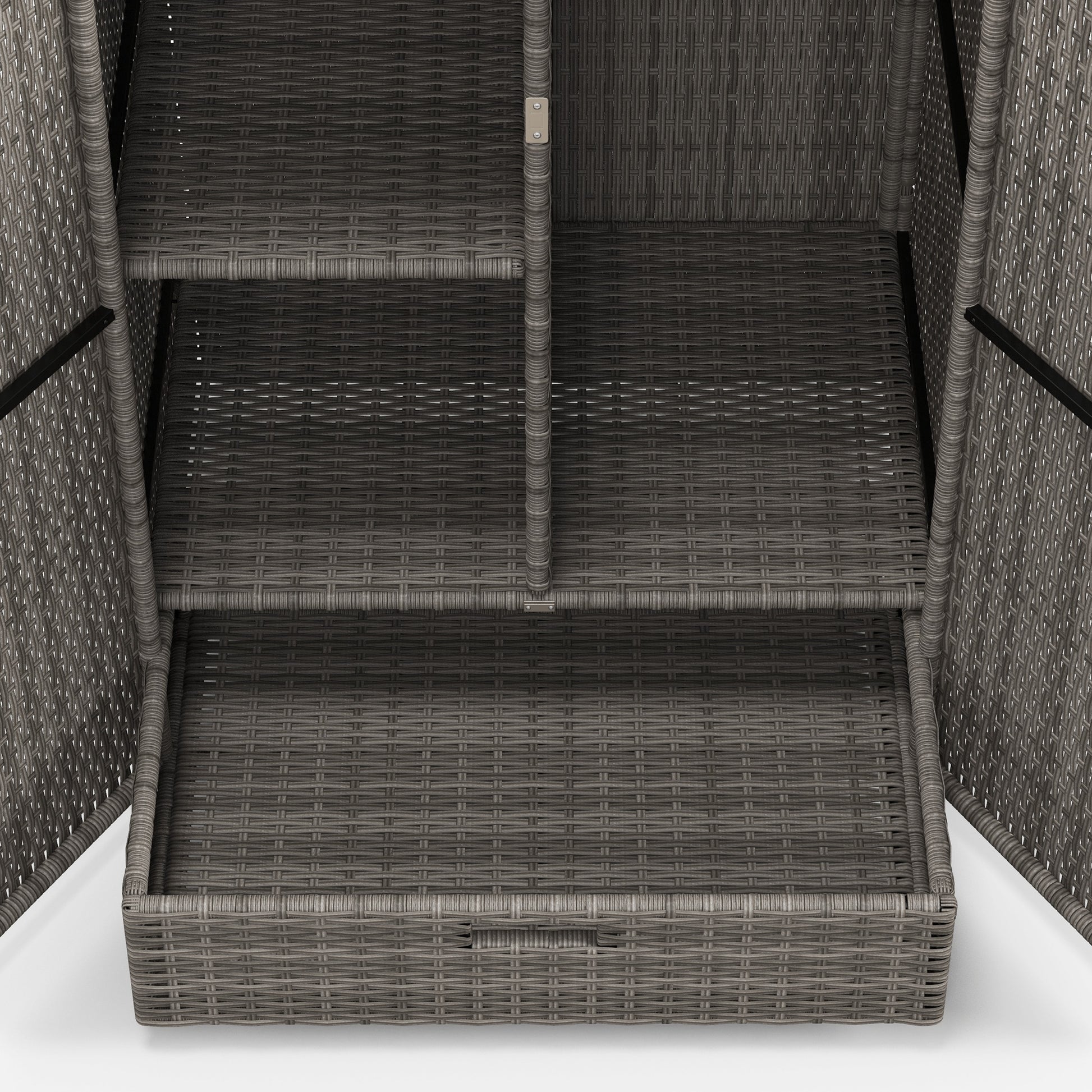 Outdoor Storage Cabinet with Shelves, Rattan Pool Towel Storage Cabinet with Removable Shelf & Drawer, Dark Gray
