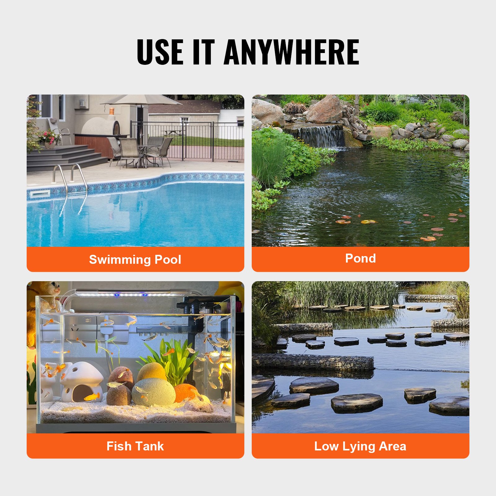 VEVOR Schmutzwasserpumpe, 400 W, 9500 L/h hoher Durchfluss, 7,9 m Förderhöhe, Tauchpumpe, tragbare Wasserpumpe mit 3 m langem Netzkabel zum Abpumpen von Wasser aus Schwimmbecken, Gartenteich, Keller